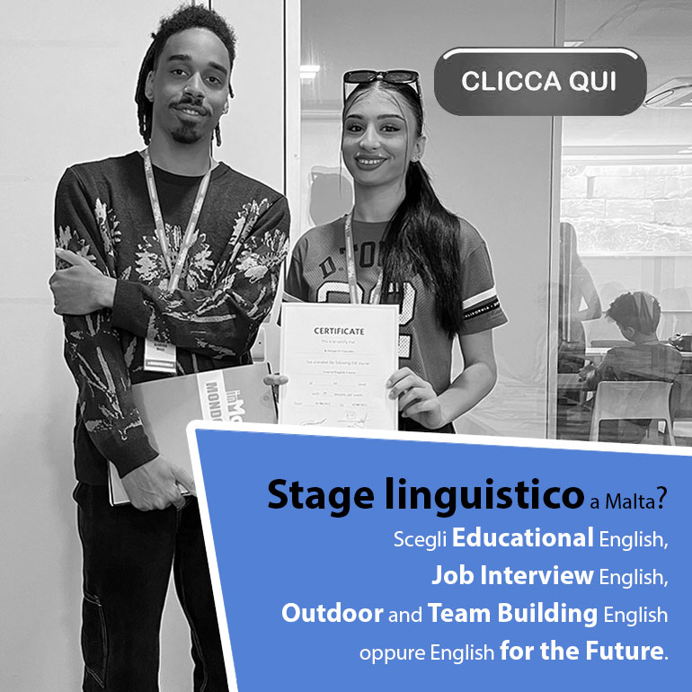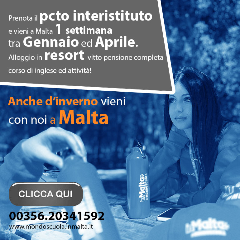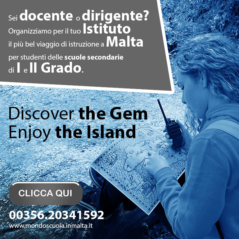 InMalta è l'unico tour operator ed ente di formazione italo-maltese, con sede stabile sia a Malta sia in Italia, che propone esperienze di formazione e di crescita personale a Malta, pensate per l'educazione dei ragazzi. Le nostre proposte, progettate per gli Istituti Scolastici Italiani di I e II grado, ed erogate qui a Malta, sono acquistabili solamente dalle Scuole di ogni ordine e grado e dalla Pubblica Amministrazione Italiana, lavoriamo solo per affidamento diretto, siamo presenti su MePA: non rivendiamo le nostre esperienze ad agenzie viaggi, tour operator ed intermediari. Non è possibile acquistare i nostri percorsi FSL Formazione Scuola Lavoro (ex PCTO) e i nostri Stage Linguistici di InMalta, proposti all'interno di questo sito internet, da altri fornitori o da scuole di inglese qui a Malta. Anche i nostri Viaggi di Istruzione sono organizzati e gestiti esclusivamente dal nostro tour operator e proposti, senza altri intermediari, direttamente agli Istituti Scolastici italiani: i pacchetti, così come creati, non sono replicabili da altri operatori. Così come i progetti Erasmus+, PNRR, PN, PON: lavoriamo senza intermediari esclusivamente con gli Istituti Scolastici al fine di proporre esperienze migliori che impiegano tutto il budget disponibile, senza disperderlo in "passaggi" inutili. Tramite il nostro tour operator/agenzia viaggi, con sede in Italia, creiamo, vendiamo e gestiamo pacchetti turistici, inclusi i viaggi in aereo. L'unicità delle esperienze, all'interno delle nostre proposte, le rende indimenticabili. Oggi le isole maltesi rappresentano lo Stato turistico per eccellenza del Mediterraneo e sei nel posto giusto per iniziare a progettare l'esperienza migliore.